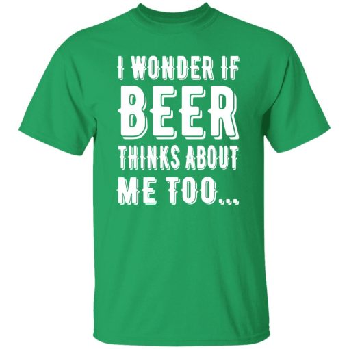 “I Wonder If Beer Thinks About Me Too” embraces beer culture and the camaraderie it brings. Whether worn at a casual get-together, a beer festival, or simply out and about, this shirt celebrates the joy and camaraderie that beer enthusiasts share, making it a fun and relatable addition to any wardrobe.