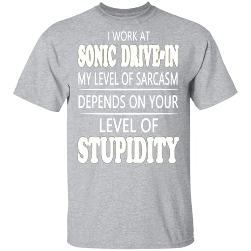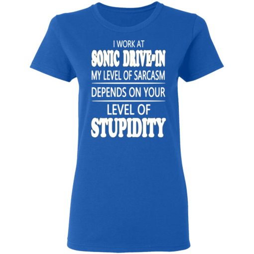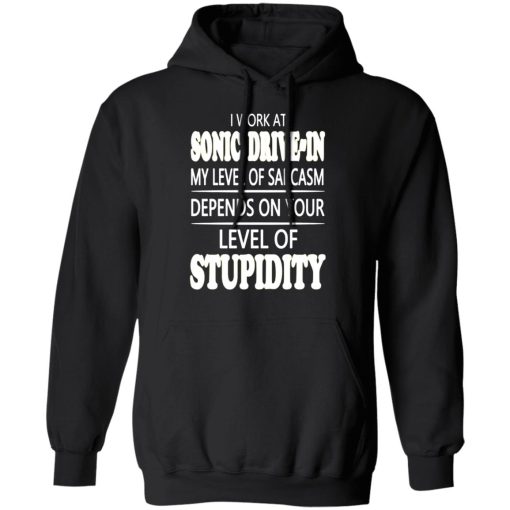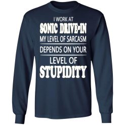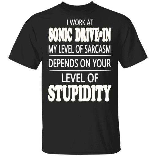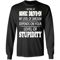 I Work At Sonic Drive-In My Level Of Sarcasm Depends On Your Level Of Stupidity T-Shirts, Long Sleeve, Hoodies