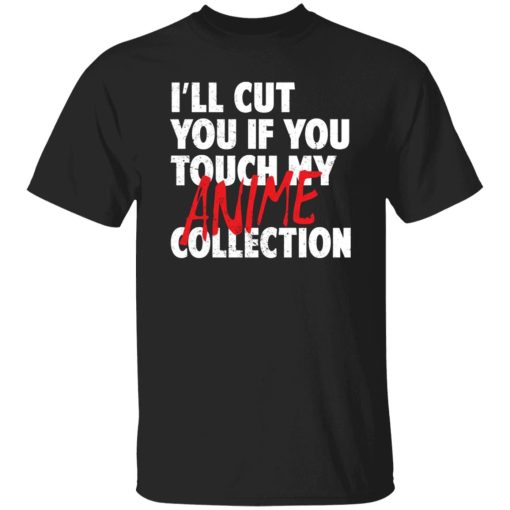 The phrase on the T-shirt, “I’ll Cut You If You Touch My Anime Collection,” humorously conveys the owner’s fierce protection over their cherished anime memorabilia. It signifies the emotional attachment and value placed on the collection, warning others not to tamper with it lightly.