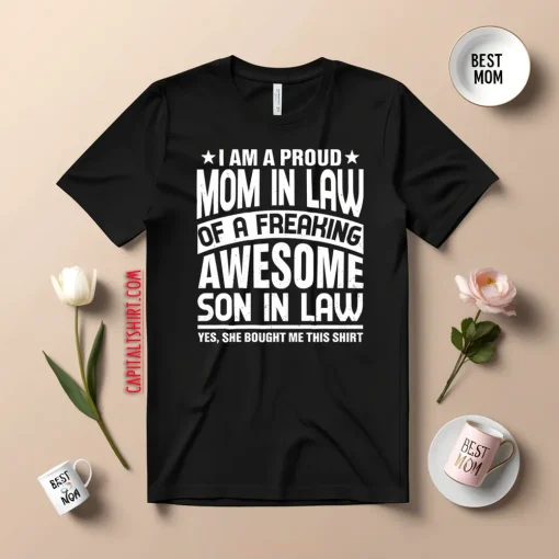 I’m a Proud Mom In Law of a Freaking Awesome Son in Law or Mom In Law T-Shirts, Long Sleeve, Hoodies