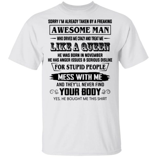 I’m Already Taken By A Freaking Awesome Man Who Drives Me Crazy And Born In November T Shirts, Hoodies, Long Sleeve