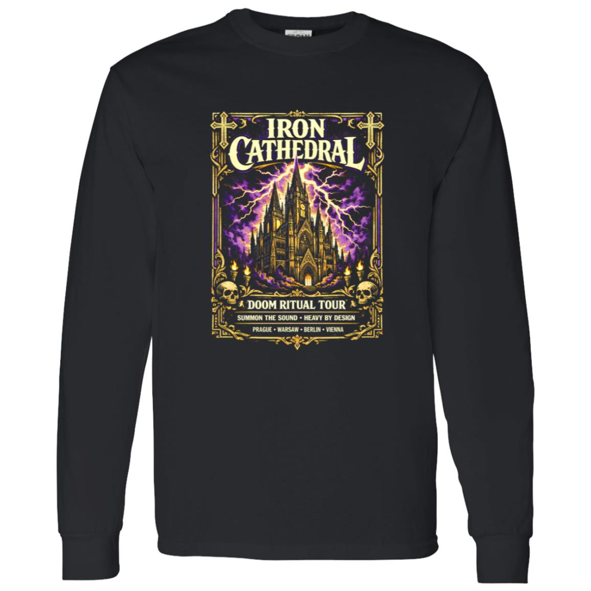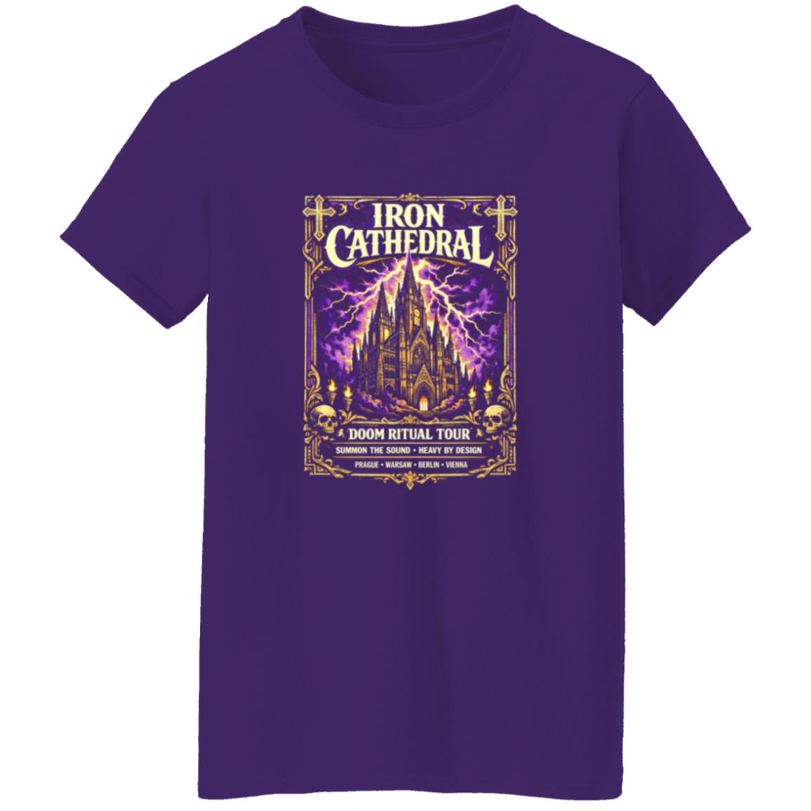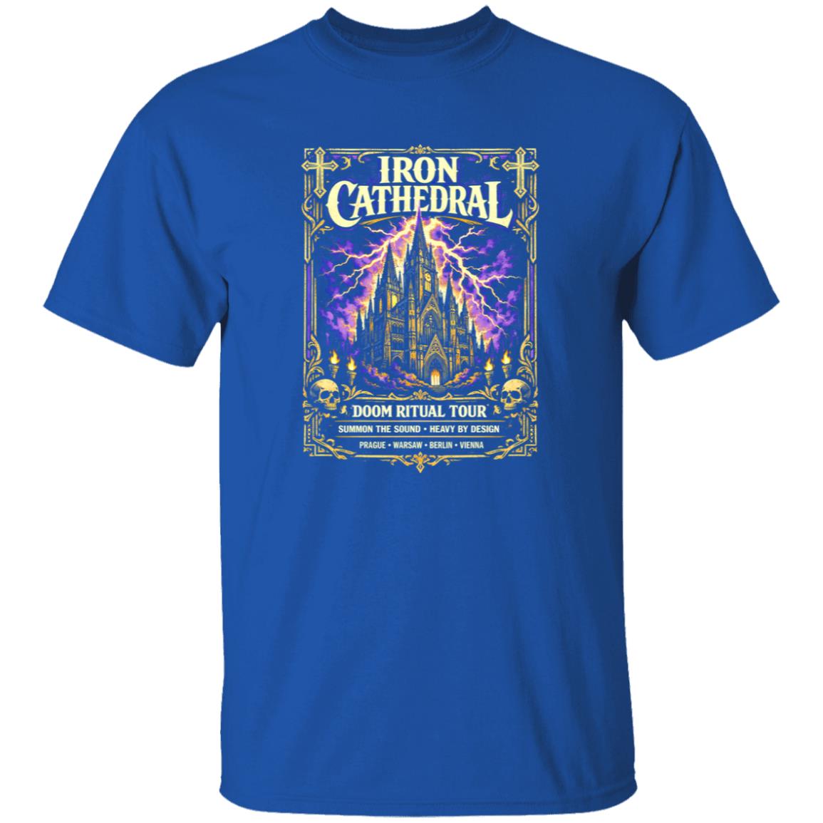 The Iron Cathedral Doom Ritual Tour Shirt works because it feels authentic to the visual tradition it draws from. The design doesn’t attempt to modernize or dilute the look. Instead, it leans directly into the bold imagery and atmosphere that made classic metal tour shirts iconic.