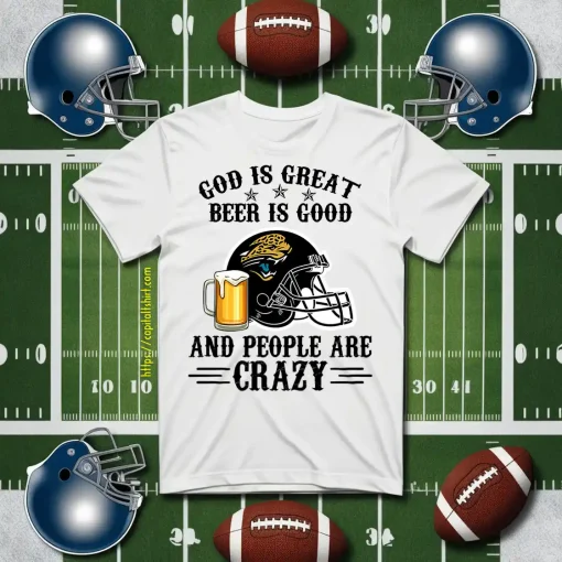 Jacksonville Jaguars God is Great Beer is Good And People Are Crazy Football NFL Shirt