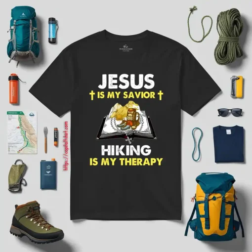 Jesus Is My Savior Hiking Is My Therapy Shirt