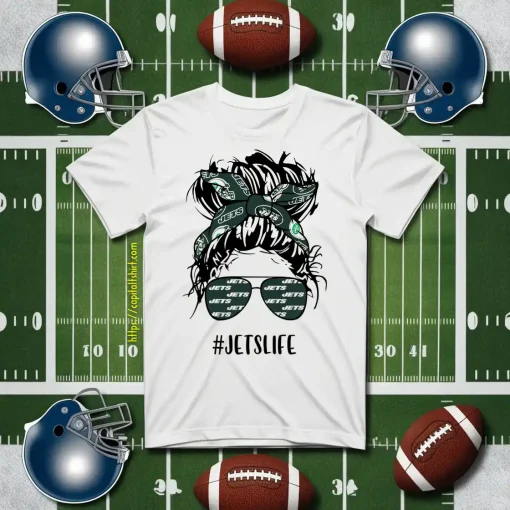 Jets Life New York Jets Messy Bun Girl With Headband And Glasses for Football Shirt