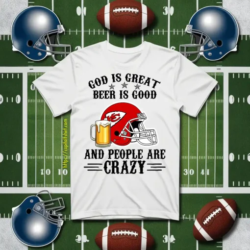 Kansas City Chiefs God is Great Beer is Good And People Are Crazy Football NFL Shirt