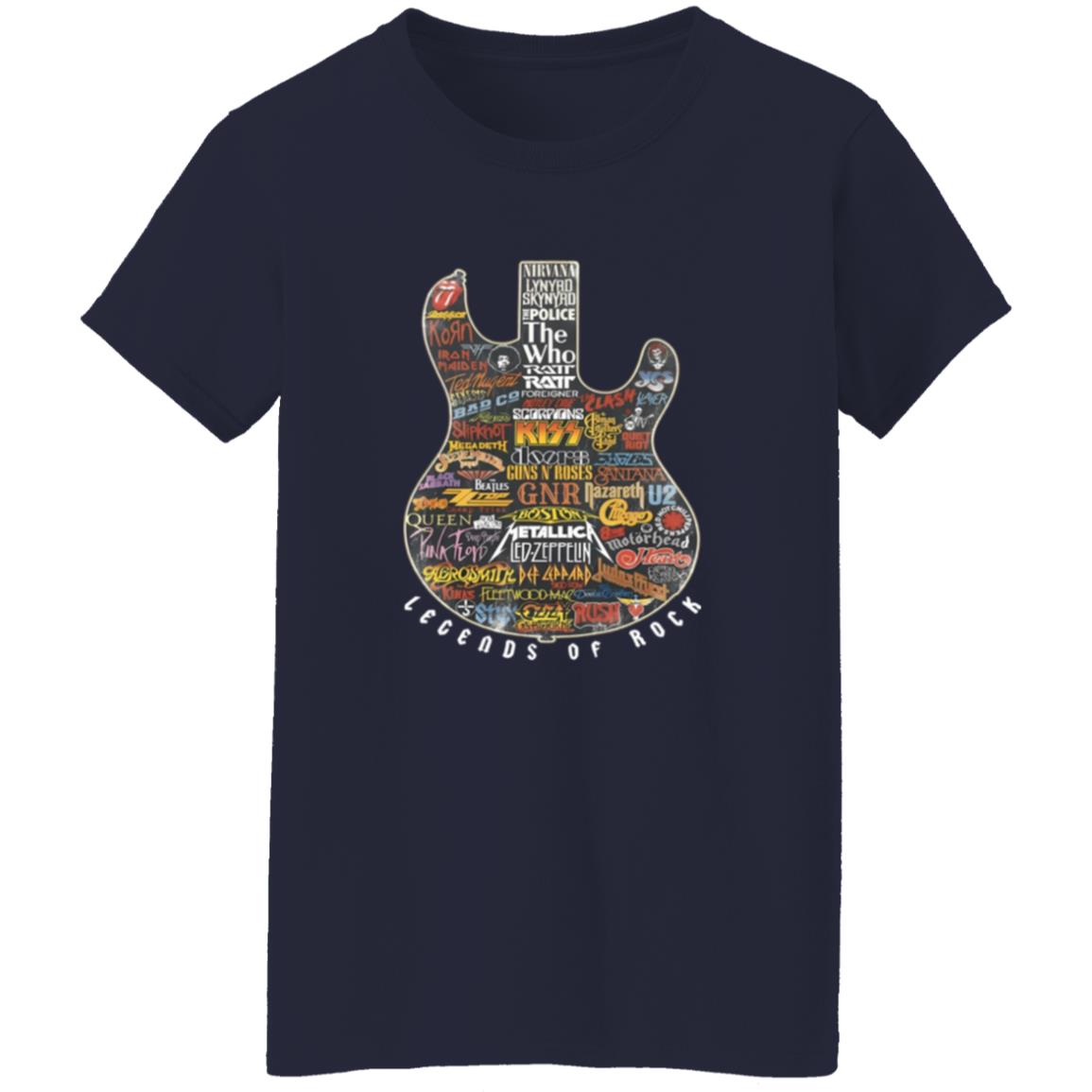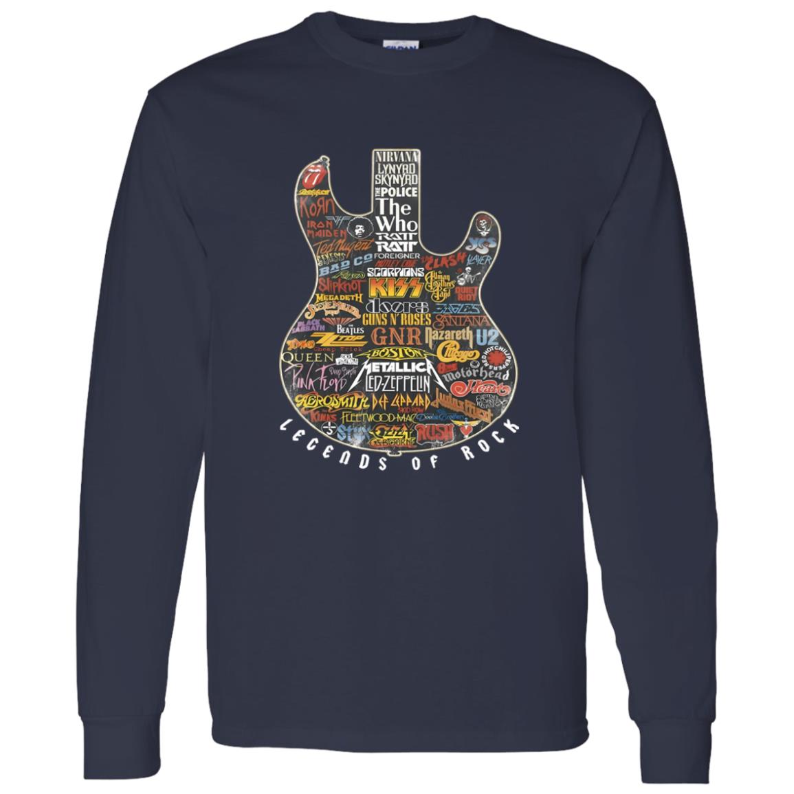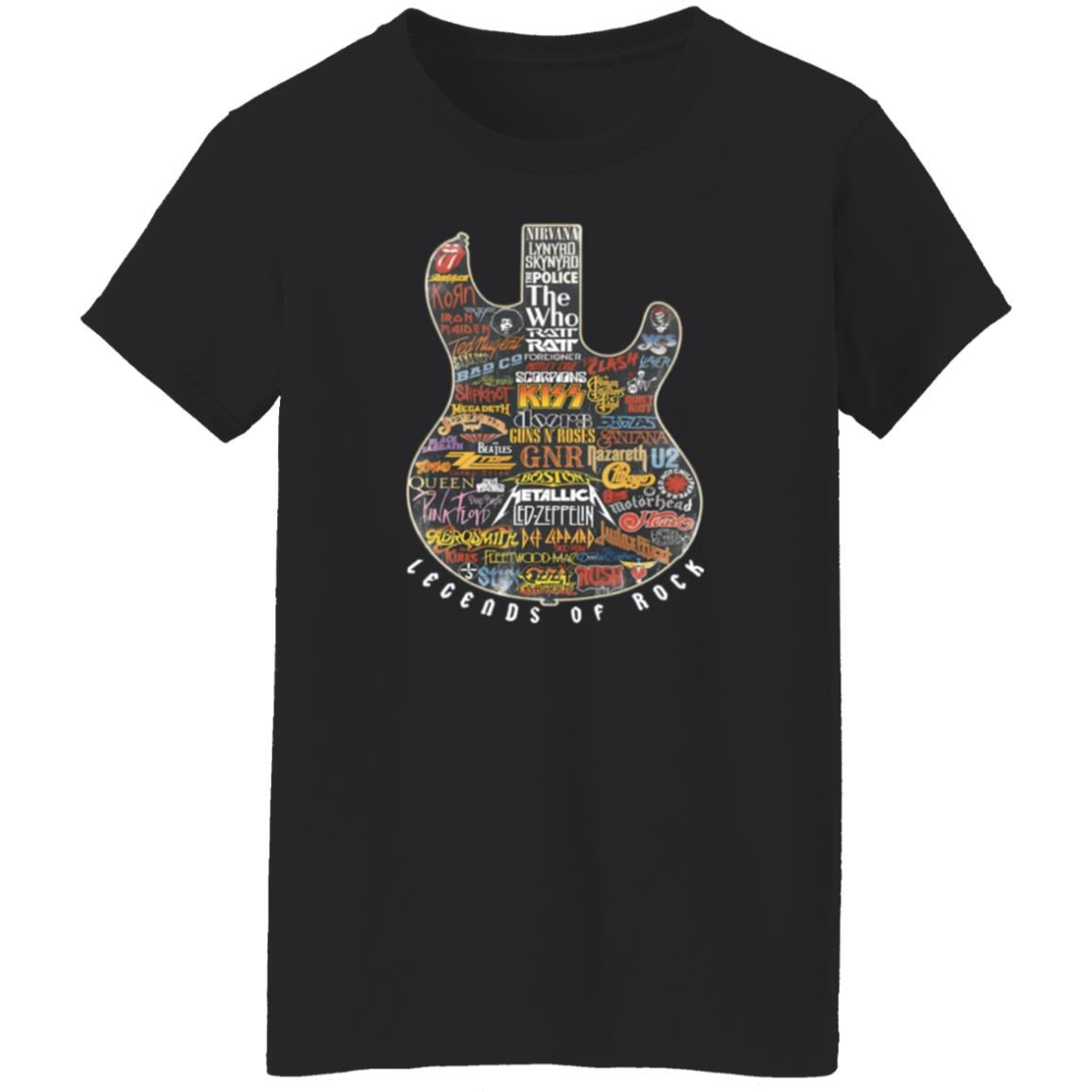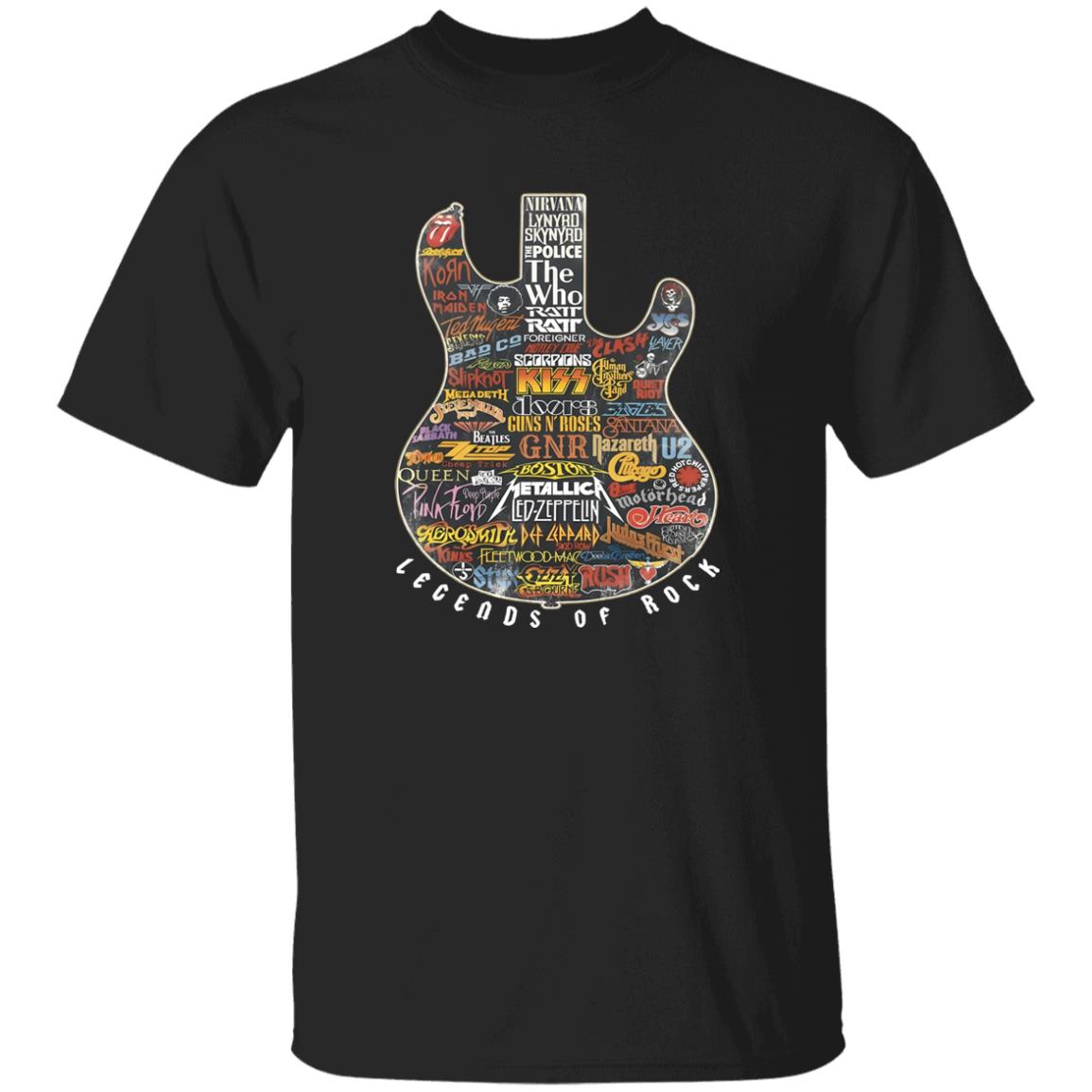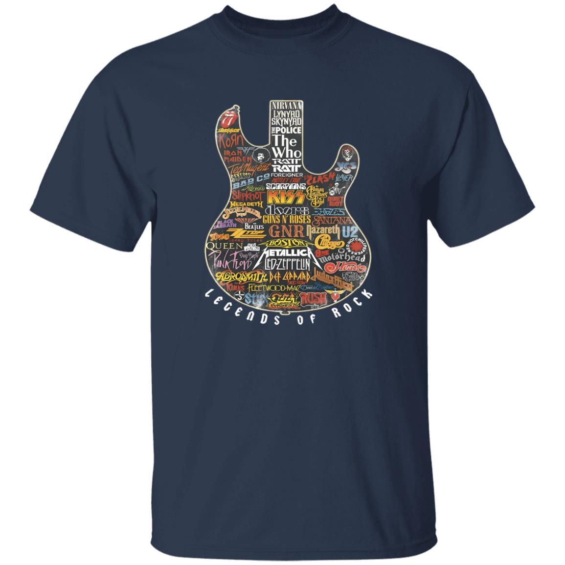 Legends of Rock Guitar Collage Classic Rock Band Logos Artwork Shirt