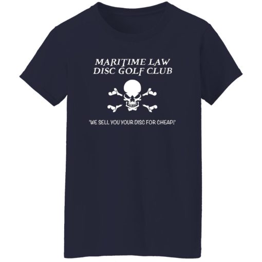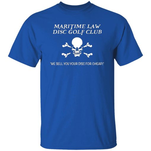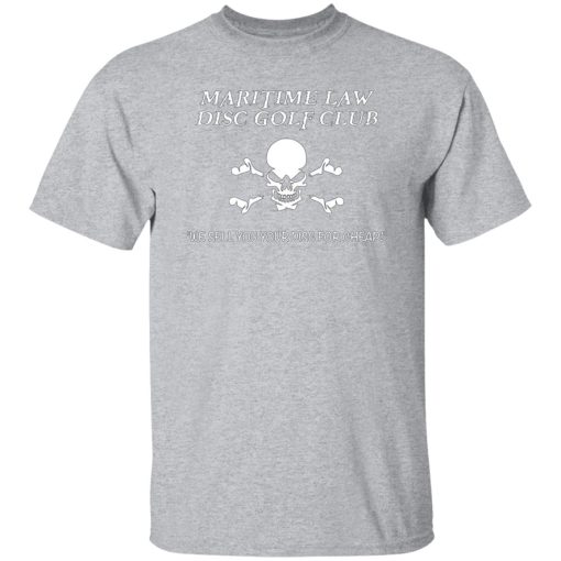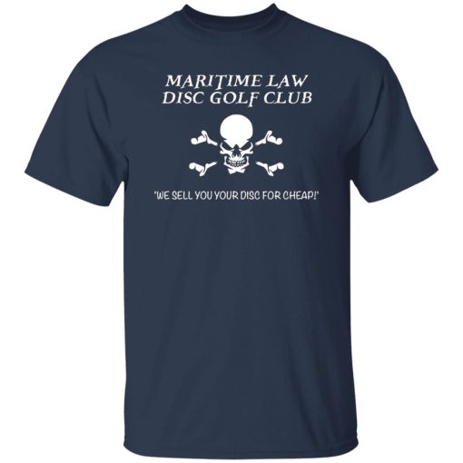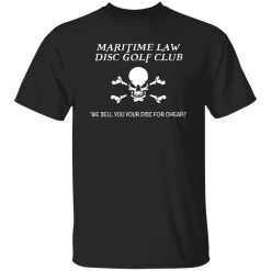 The “Maritime Law Disc Golf Club We Sell You Your Disc For Cheap” T-shirt is more than just apparel; it embodies a community and a shared passion for disc golf. With its distinctive design and message, it serves as a symbol of camaraderie among disc golf enthusiasts.