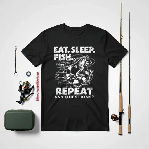 Men Fishing Eat Sleep Fish Repeat Fisherman Funny Gift Shirt