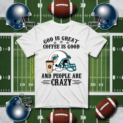 Miami Dolphins God is Great Coffee is Good And People Are Crazy Football NFL Shirt