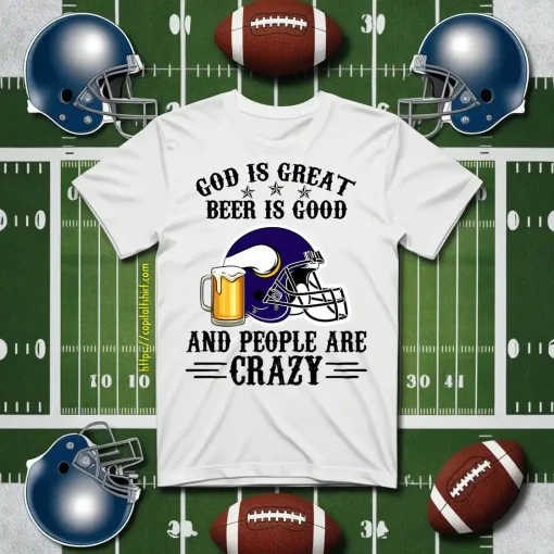 Minnesota Vikings God is Great Beer is Good And People Are Crazy Football NFL Shirt