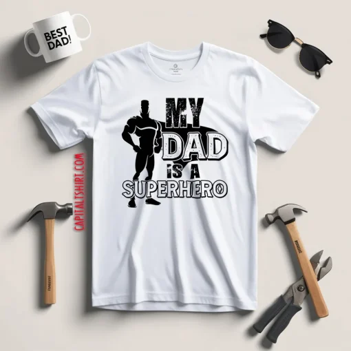 Moreover, the shirt serves as a heartwarming gift. Giving a father a “My Dad Is A Superhero” shirt can be a touching gesture on special occasions like Father’s Day, birthdays, or even just as a spontaneous expression of love. It allows children to convey their gratitude and admiration in a simple, yet profound way.