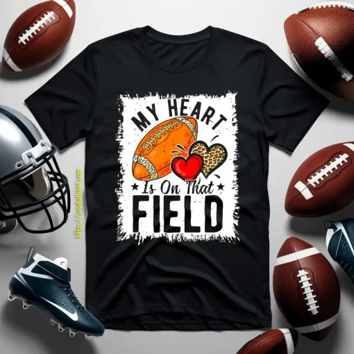 My Heart Is On That Field Football Leopard Heart Shirt