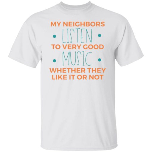 The “My Neighbors Listen To Very Good Music” T-shirt celebrates the diversity of musical preferences and the joy of discovering shared tastes among neighbors. It’s a playful compliment to those who contribute to the neighborhood ambiance with their discerning musical selections. Whether it’s the soothing strains of jazz or the energetic beats of rock, good music has the power to uplift spirits and create a sense of unity among residents.