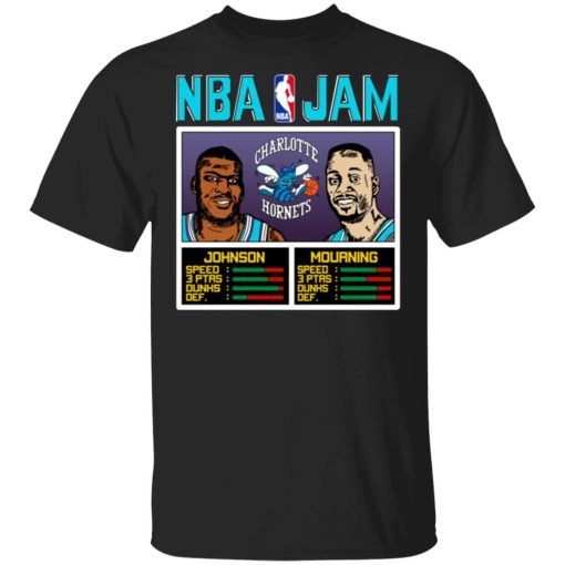 Conclusion: The “NBA Jam Hornets Johnson And Mourning” T-shirt is more than just apparel; it’s a symbol of basketball nostalgia and team pride. Its significance lies in its ability to celebrate the dynamic duo of Larry Johnson and Alonzo Mourning and their enduring legacy in the history of the Charlotte Hornets and the NBA.