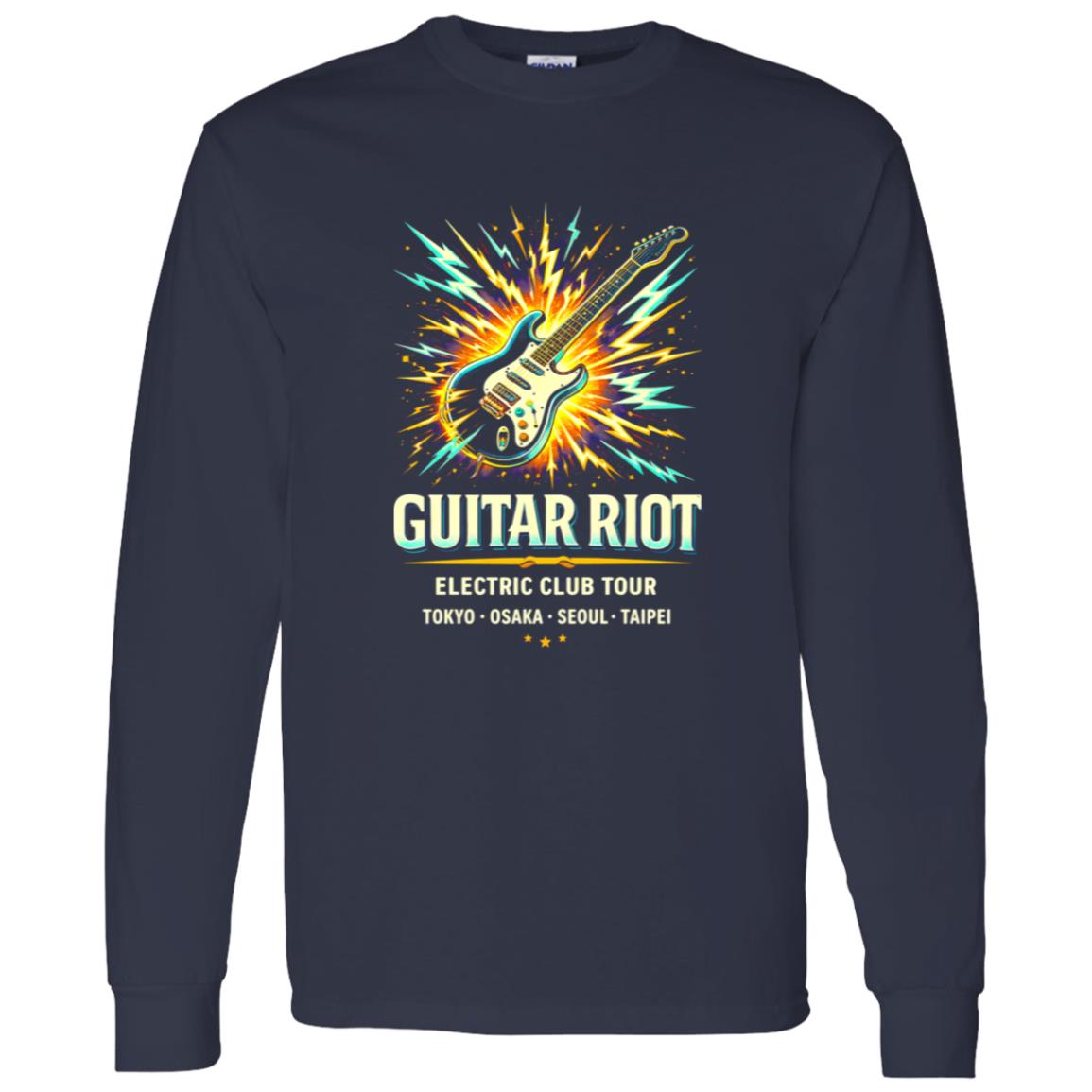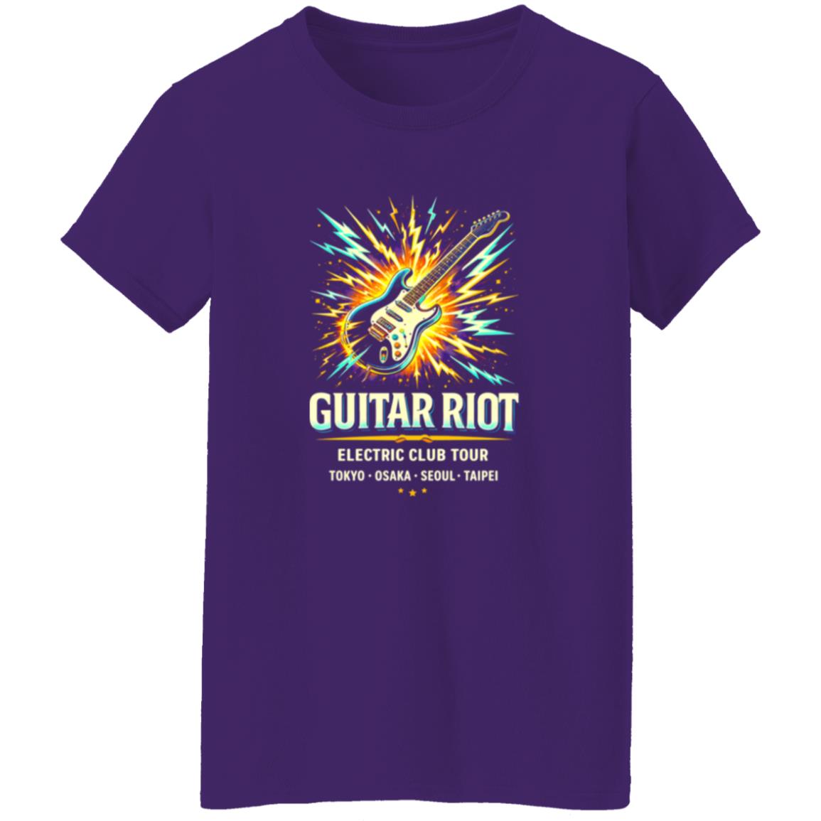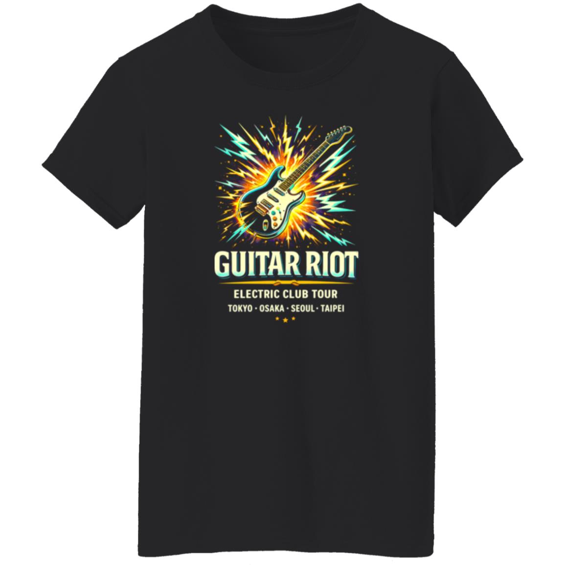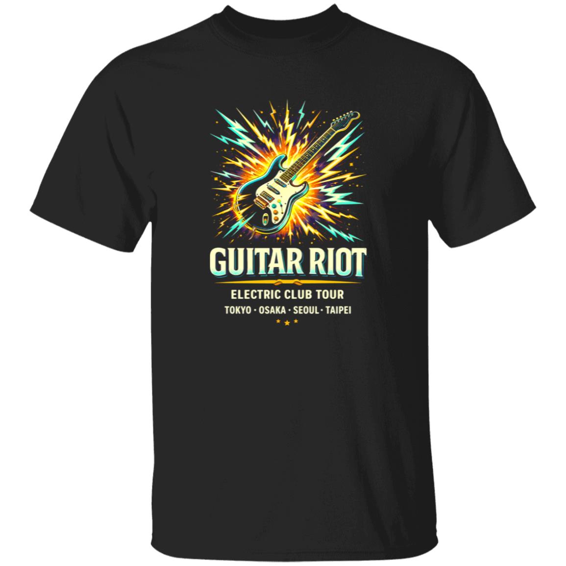 Neon Guitar Riot Rock Shirt With Bold Electric Energy
