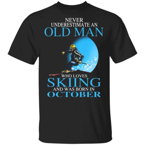 Never Underestimate An Old Man Who Loves Skiing And Was Born In October T-Shirts, Long Sleeve, Hoodies