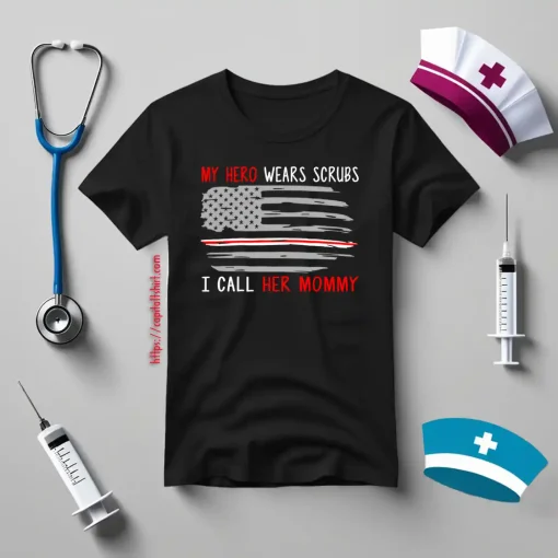 Nurse Mom Shirt, My Hero Wears Scrubs I Call Her Mommy Shirt