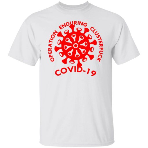 The “Operation Enduring Cluster C-19” T-shirt holds a significant message regarding the global COVID-19 pandemic. It likely serves as a satirical commentary or a form of expression related to the challenges and enduring nature of combating the virus.