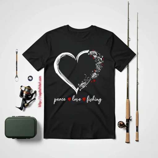 Peace Love Fishing Cute Fisher Gifts Heart Fishing Shirt