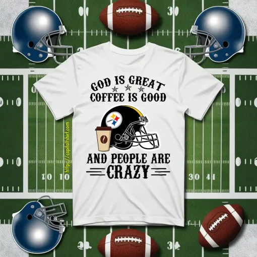 Pittsburgh Steelers God is Great Coffee is Good And People Are Crazy Football NFL Shirt