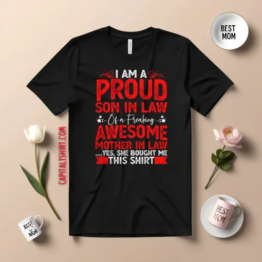 Proud Son in Law Tshirt Gift Funny Mother In Law I’m A Proud Son In Law Of A Freaking Awesome Mother In Law T-Shirts, Long Sleeve, Hoodies
