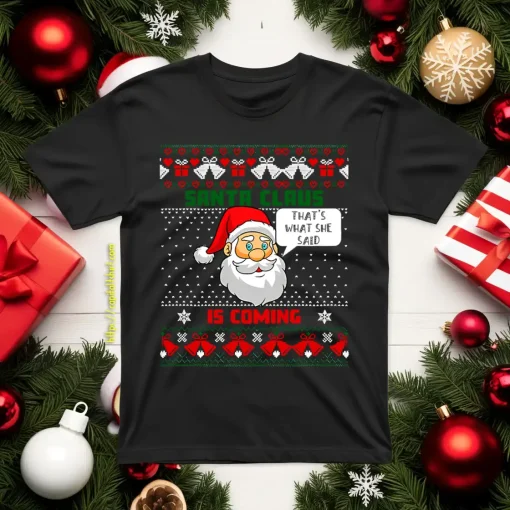 Santa Claus Is Coming That’s What She Said Funny Christmas Shirt