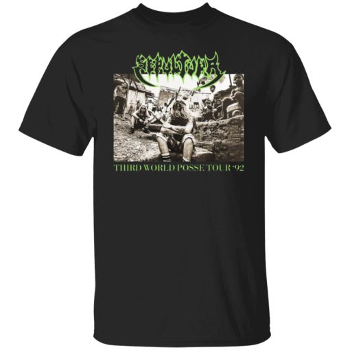 Many fans choose to wear designs like the Sepultura Third World Posse Tour 92 shirt as a statement piece—paired with simple staples like worn denim, dark jackets, or classic boots. The contrast between straightforward clothing and a bold graphic allows the design to stand out without feeling overstyled.