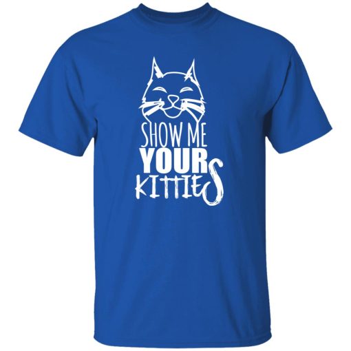 “Show Me Your Kitties” proudly proclaims the wearer’s affection for cats, inviting others to share in the joy of feline companionship. It’s a playful phrase that highlights the special bond between humans and their beloved cats. By wearing this shirt, individuals express their love for cats and their importance in their lives.