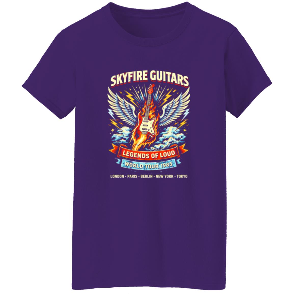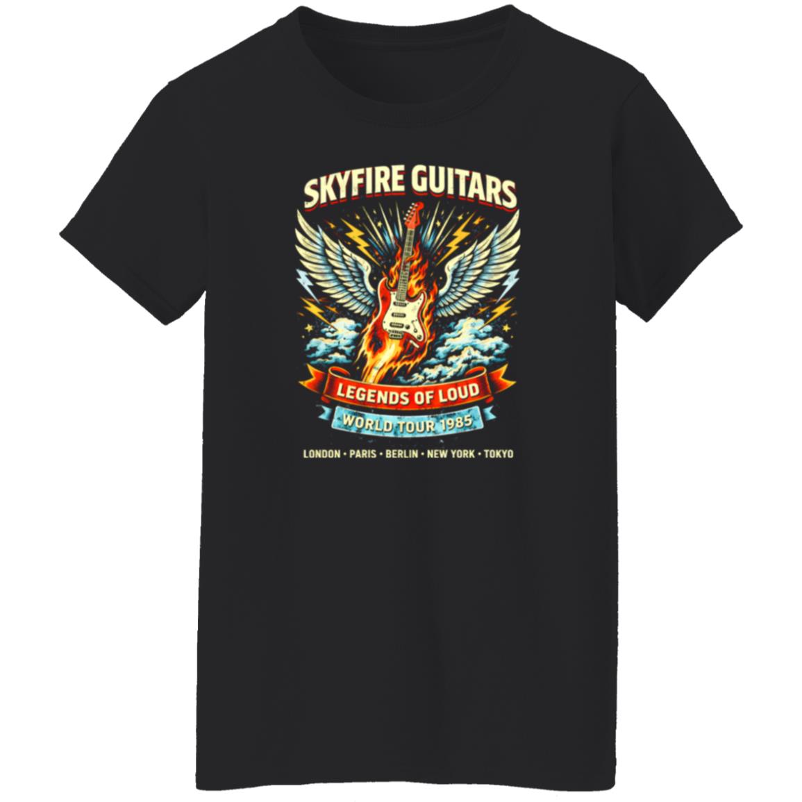The Skyfire Guitar Legends Tour Shirt doesn’t rely on subtlety. It’s built to stand out, to hold attention, to project a certain kind of confidence. And that’s consistent with how rock style has always worked: bold visuals paired with effortless wearability.