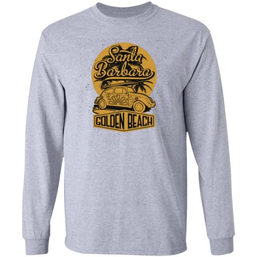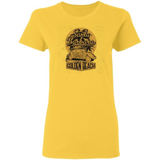 The term “Golden Beach” pays homage to the golden sands that line Santa Barbara’s picturesque coastline. It captures the essence of the city’s renowned beaches, known for their beauty, cleanliness, and recreational opportunities. The shirt celebrates the allure of Santa Barbara’s shores, inviting wearers to envision themselves basking in the California sun along its golden sands.