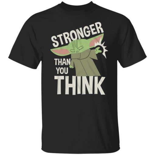 Moreover, the phrase “Stronger Than You Think” on the T-shirt conveys a message of resilience and inner strength embodied by Baby Yoda. Despite his small stature and youthful appearance, Baby Yoda possesses remarkable abilities and a wisdom beyond his years, making him a symbol of determination and fortitude.