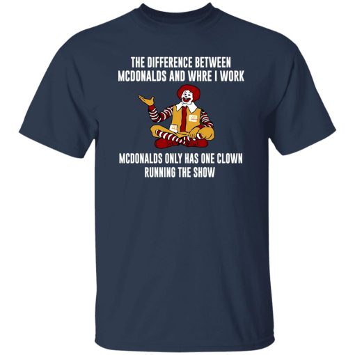 “The Difference Between McDonalds And Where I Work McDonalds Only Has One Clown Running The Show” T-shirt has emerged as a popular statement piece, attracting attention with its witty slogan. In this article, we delve into the significance of this humorous apparel item and its appeal to a wide audience.