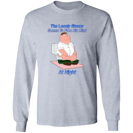 The Lonely Stoner Seems To Free His Mind At Night Peter Griffin shirt represents the lighter side of music culture. It keeps the lyrical reference intact while transforming it into something humorous and visually distinctive.