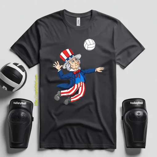 Uncle Sam Playing Volleyball American Flag For 4th Of July Shirt