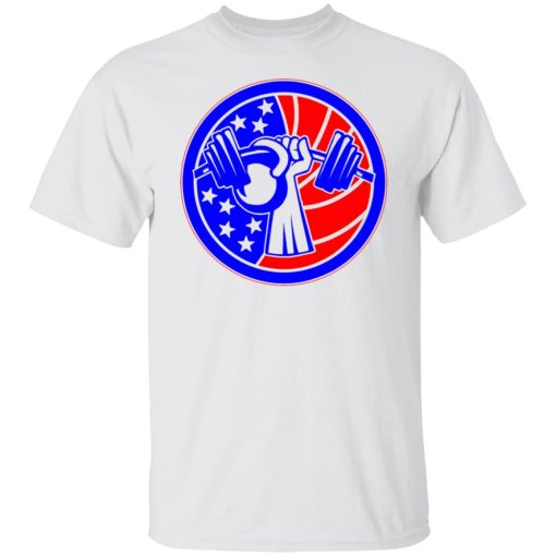 Patriotic Fitness Statement This shirt merges patriotism with fitness, showcasing a commitment to both physical strength and national pride. The US flag motif represents love for country, while the dumbbell signifies dedication to physical fitness and strength training.