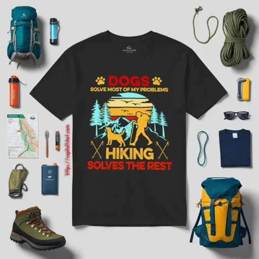 Vintage Dogs Solve Most Of My Problems Hiking Solves The Rest Shirt