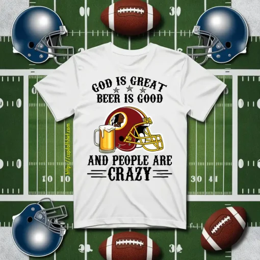 Washington Redskins God is Great Beer is Good And People Are Crazy Football NFL Shirt