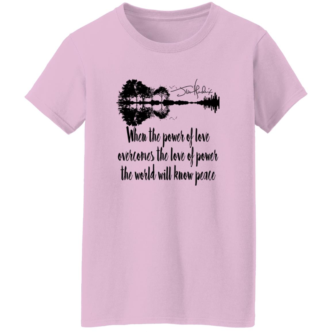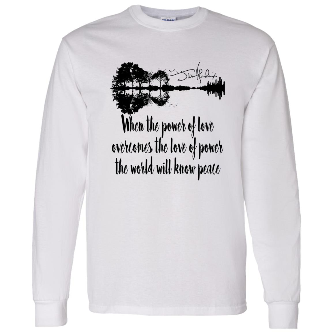 The When The Power Of Love Overcomes The Love Of Power The World Will Know Peace Jimi Hendrix Shirt doesn’t try to compete visually. It doesn’t need to. The message carries it.