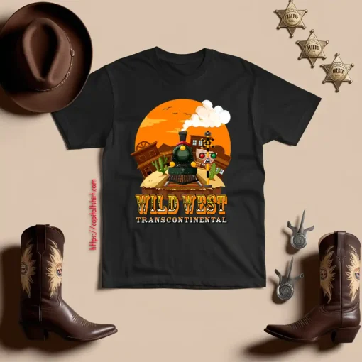 In conclusion, the “Wild West Railroad” t-shirt is more than just a garment; it’s a symbol of progress, adventure, and the enduring legacy of the American frontier. With its vintage design and homage to railroad history, this shirt serves as a reminder of the indelible mark left by the railroad on the landscape and culture of the Wild West. Whether worn by history buffs, railroad enthusiasts, or anyone with a love for the Old West, it commemorates a chapter of American history that continues to captivate imaginations to this day.