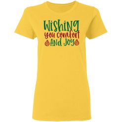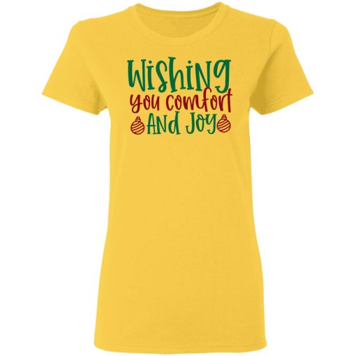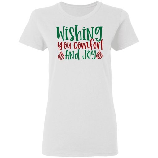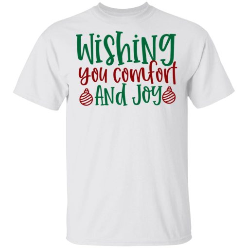 The T-shirt with the heartfelt message “Wishing You Comfort And Joy” embodies a sentiment of warmth, care, and goodwill. It serves as a reminder to prioritize not only one’s own comfort and happiness but also to extend kindness and joy to others. Whether worn during the holiday season or as a year-round message, this T-shirt encapsulates the spirit of spreading positivity and offering well-wishes to those around us.
